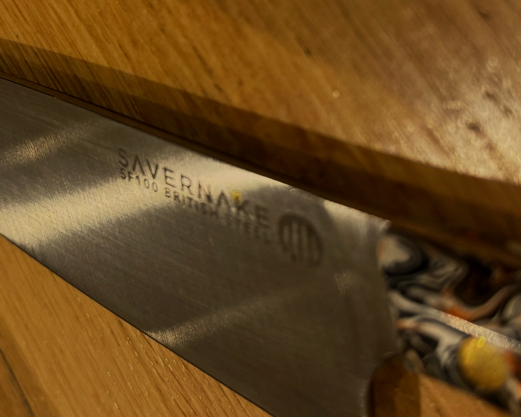 Manufacturer: Savernake Knives (Marlborough, UK) Blade Steel: SF100 (British Steel, Sheffield) Handle Material:High-Density Synthetic Marble (G9 Grade)